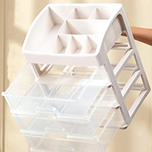 Avec ses compartiments multiples et ses tiroirs spacieux, notre organisateur de maquillage offre une solution pratique pour garder votre collection bien ordonnée. Fini le temps perdu à chercher vos produits, placez-les dans notre boîte de rangement pour un accès instantané.